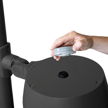 VALINTA GROOVE comes with a unique system for straightforward mounting. The base is easily fixed onto a surface or a pole. Then the male part is inserted and secured by rotating the luminaire.