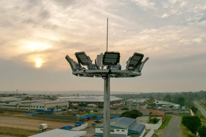 The recently launched South African OMNISTAR-ECO LED floodlight was chosen as it offered a cost-effective highmast lighting solution and met the municipal specification. Compared to a 400W high-pressure sodium (HPS) installation, the OMNISTAR-ECO offers energy savings up to 55%.